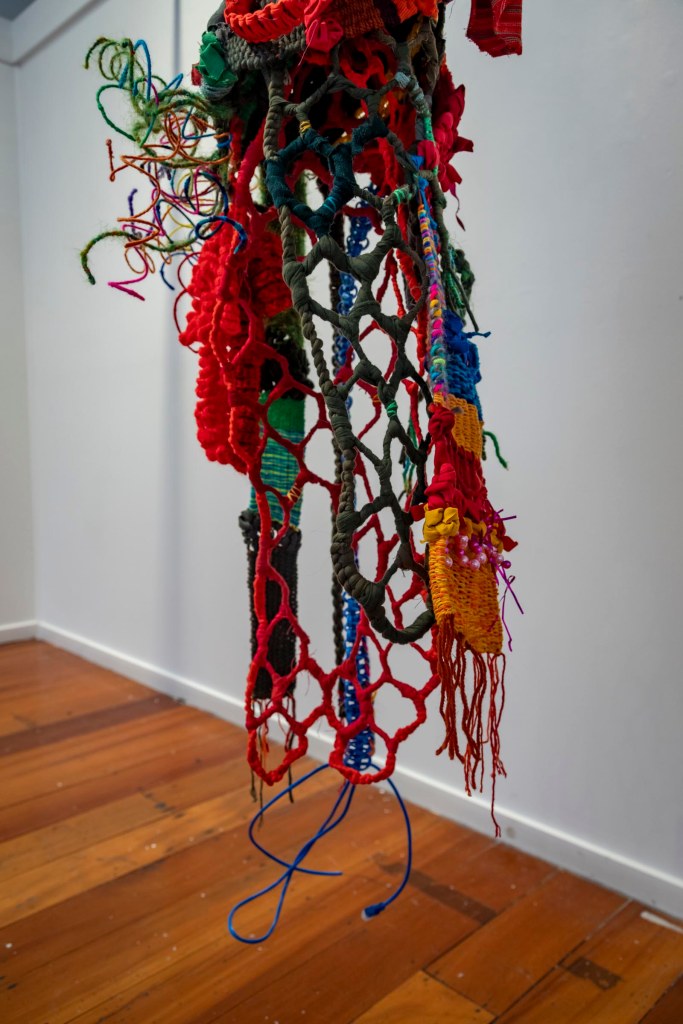 Date: August 2024Size: 2500×3000Media: fabric, thread, wire, yarn, internet cable, beads.